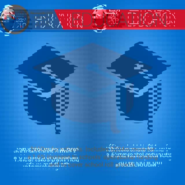* Education: $650m for schools. Includes $204m more for a 1.6 per cent increase to schools' operational funding and to cover school roll growth.
